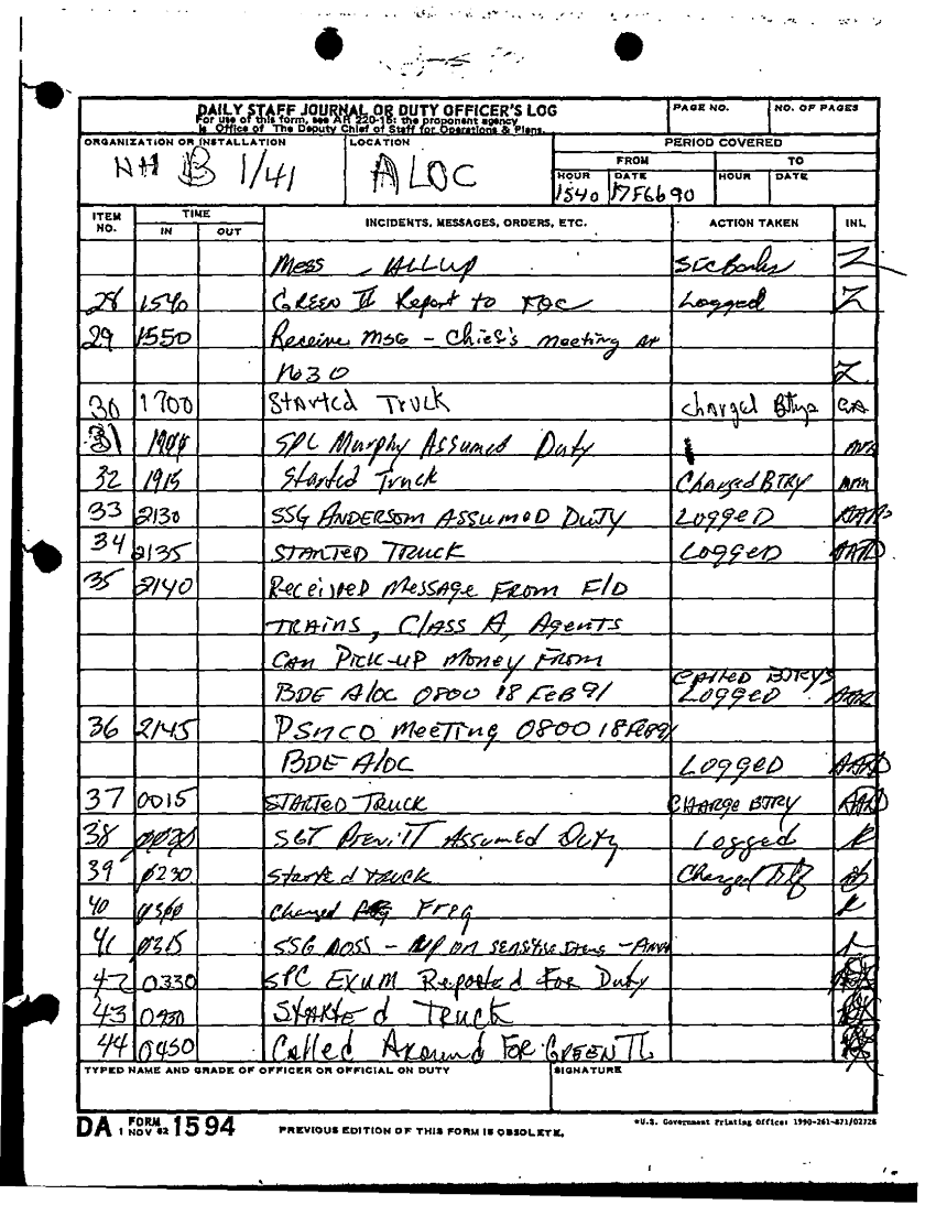 Document 21 f:/Week-22/BX001431/DAILY STAFF JOURNALS - 24TH INF - JAN-FEB 91/daily staff journal hhb 1 41 a loc:09069614062522