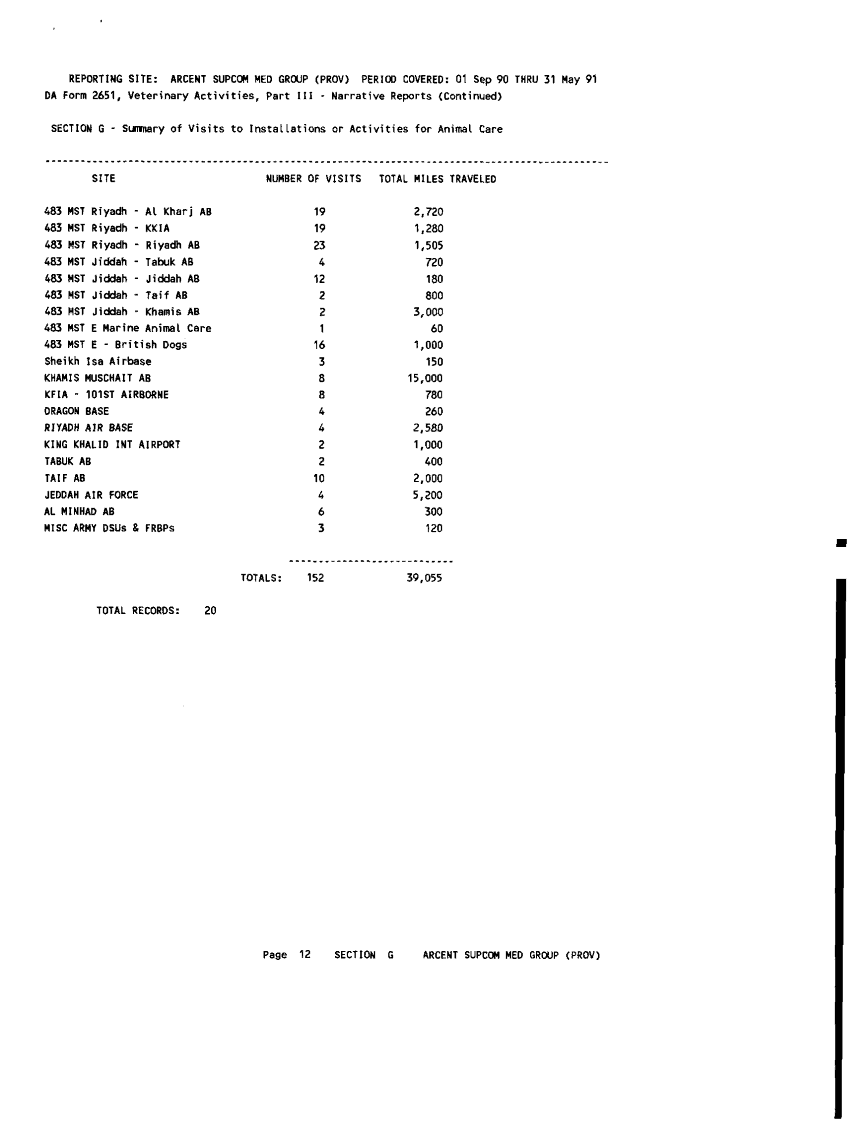 Subject = VETERINARY ACTIVITIES 1 31 MAY 91