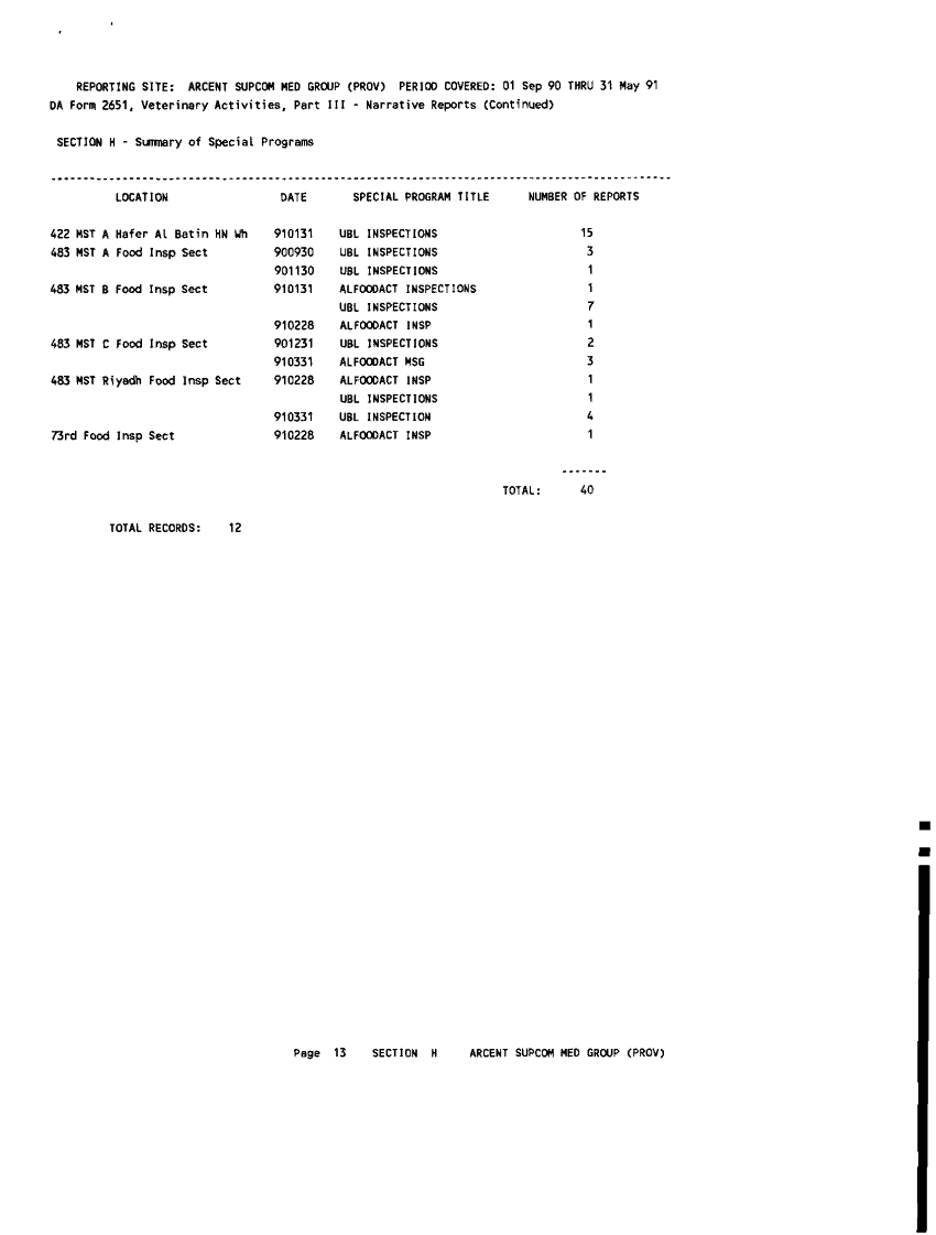 Subject = VETERINARY ACTIVITIES 1 31 MAY 91