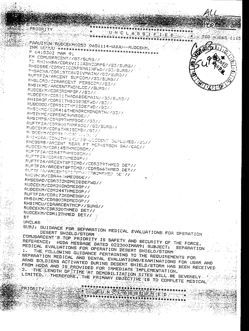 Subject = GUIDANCE FOR SEPARATION MEDICAL EVALUATIONS FOR