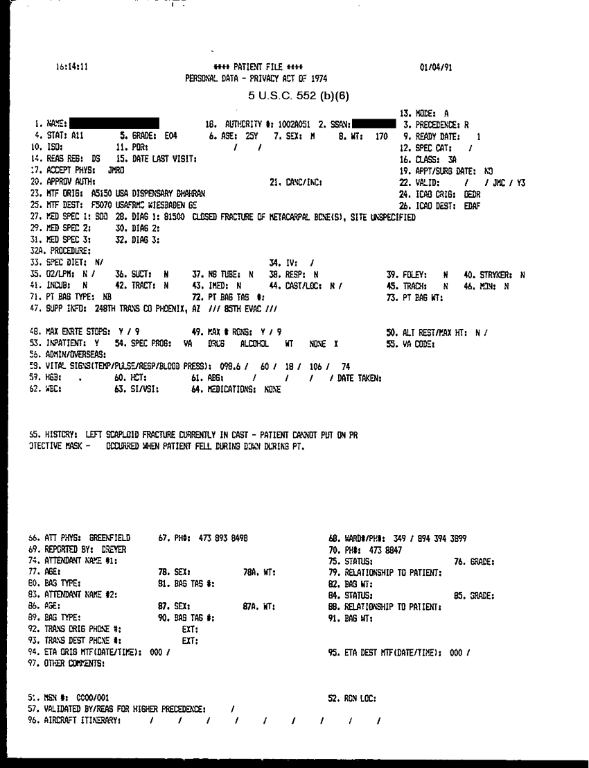 Document 31 f:/Week-31/BX000460/MEDSTAT- SITREPS - JANUARY - 1/personal data privacy act of 1974 4 jan 91:09209615580712