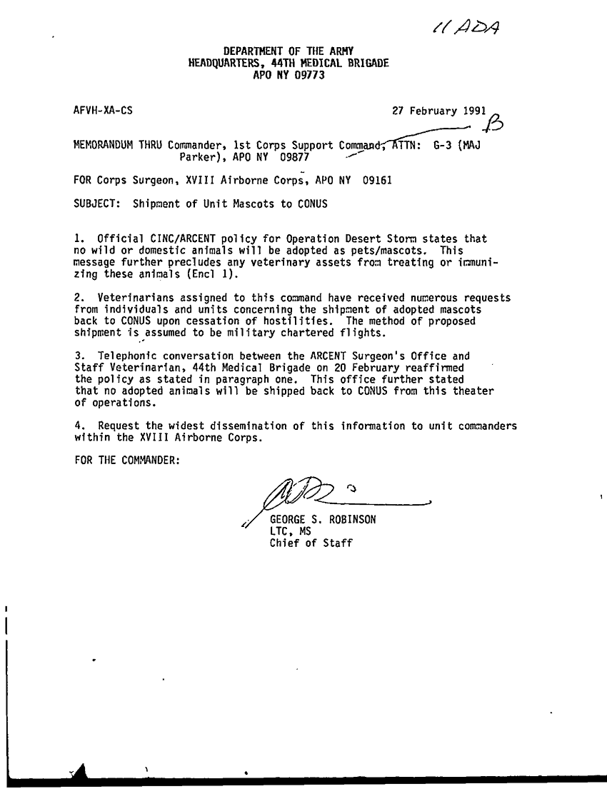 Document 2 f:/Week-34/BX005154/MAJOR STALLINGS/shipment of unit mascots to conus:092096155909116