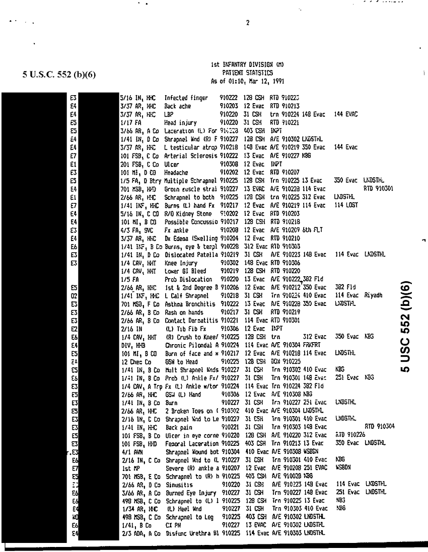 Document 4 f:/Week-26/BX001004/PURPLE HEART/1st id patient statistics 12 mar 91:09209615582239