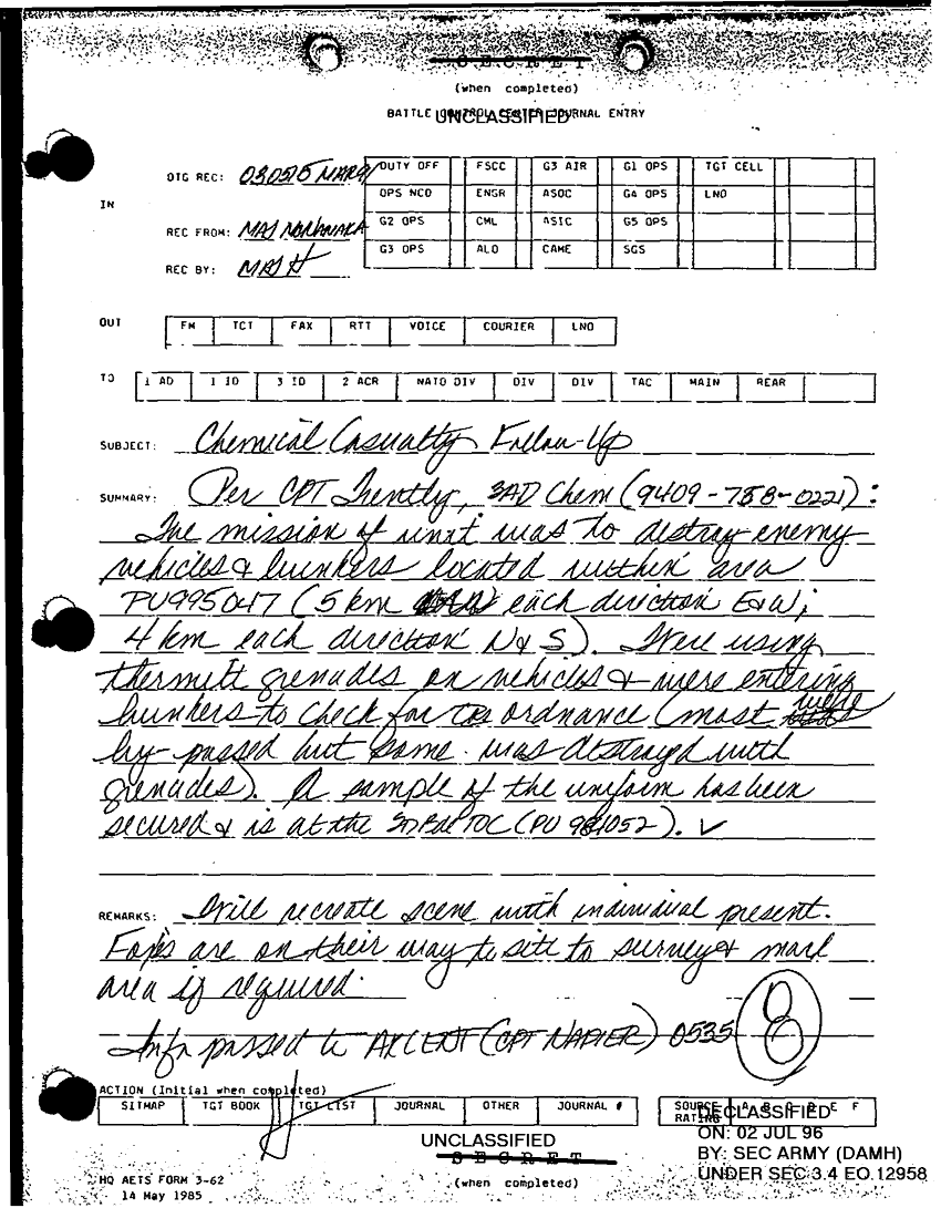 Document 1 f:/Week-25/BX000231/0007 CORPS CHEMICAL BOOK THREE/chemical casualty follow up:0920961558036