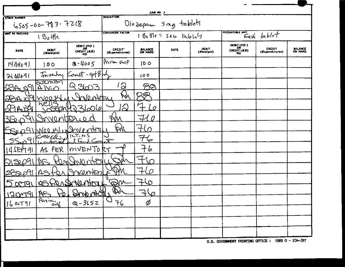 Document 2 f:/Week-35/BX005161/CONTROLLED SUBSTANCE STOCK RECORDS/diazepam tablets:09209615583153