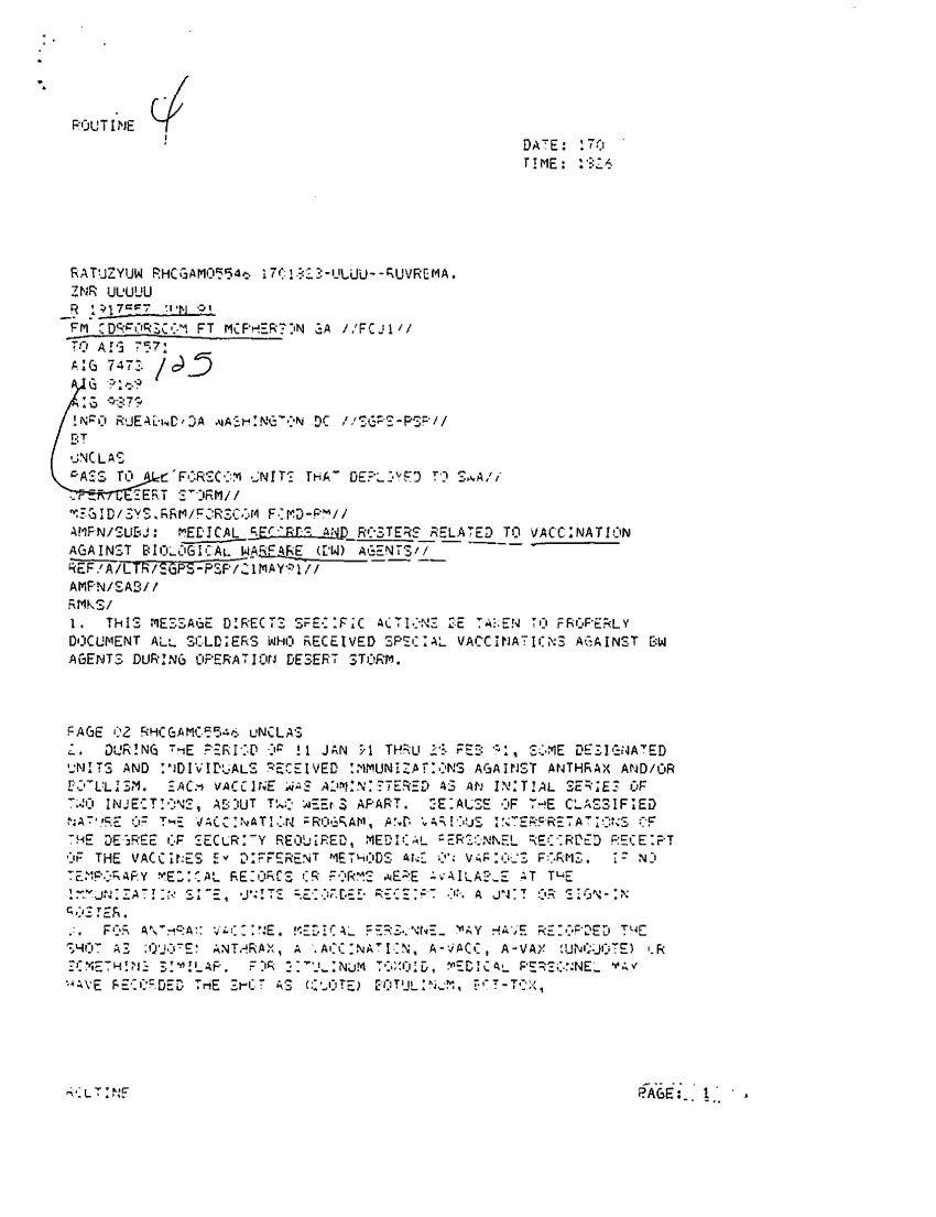 Subject = MED RECORDS AND ROSTERS RELATED TO VACCINATION A