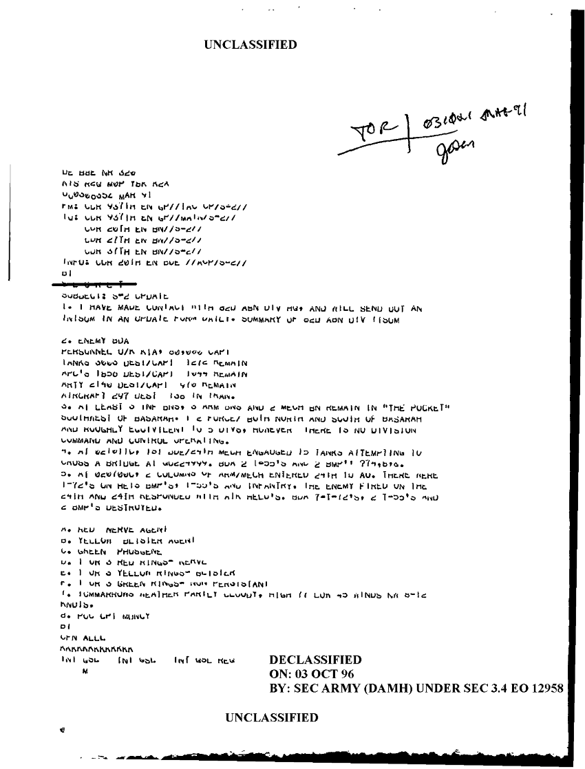 Document 1 f:/Week-18/BX000057/DUTY LOG MAIN CP MESSAGES 20 ENGINEER BDE 3 MAR 91/s2 update:101196154300138