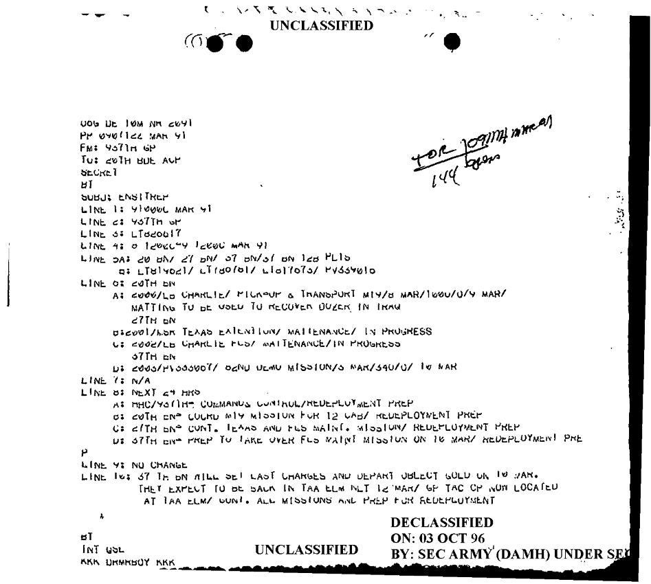 Document 1 f:/Week-18/BX000057/DUTY LOG MAIN CP MESSAGES 20 ENGINEER BDE 9 MAR 91/ensitrep:10119615410939