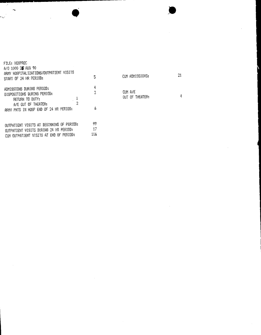 Document 4 f:/Week-32/BX000482/MEDSTAT - SITREPS AUG 90 1 OF 1/army hospitalization outpatient visits 26 sep :10119615403015