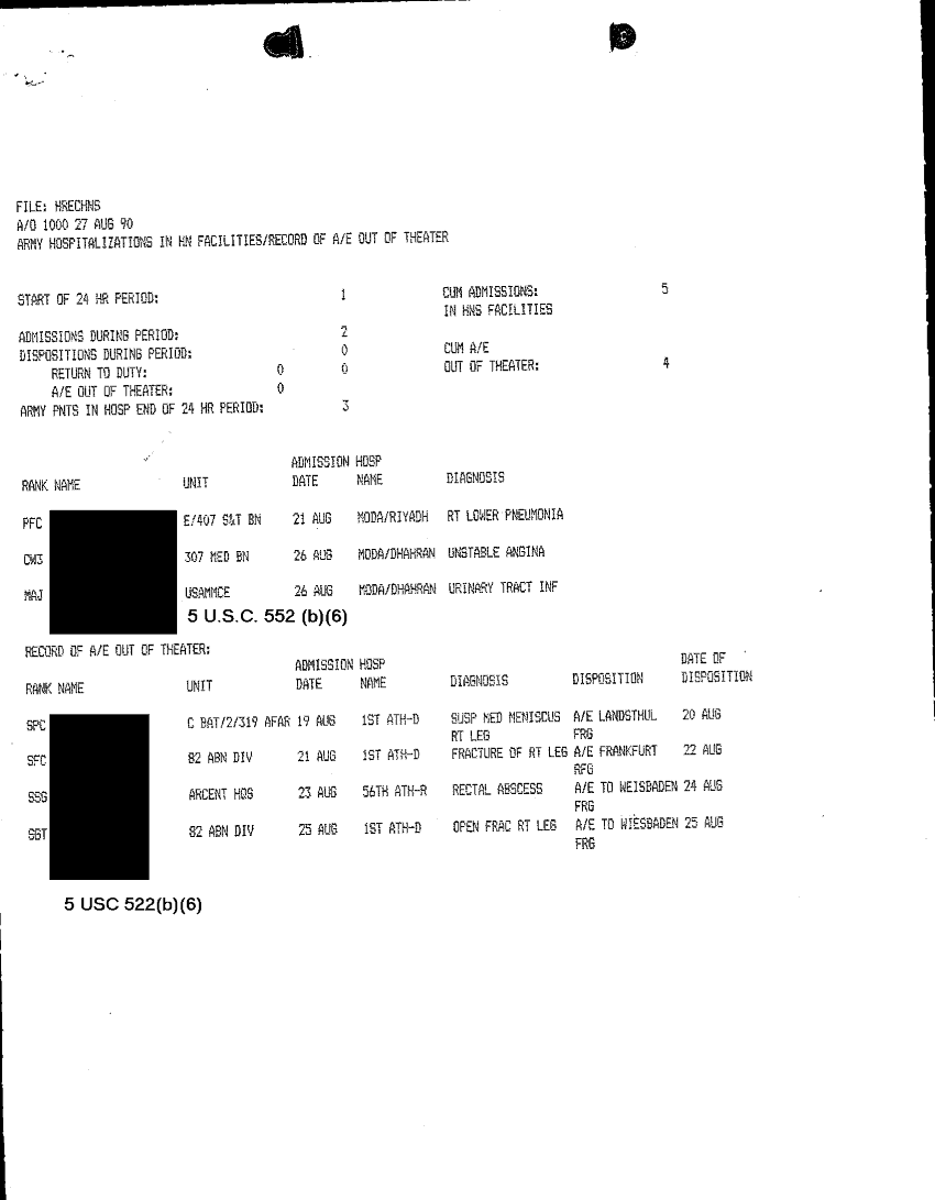 Document 4 f:/Week-32/BX000482/MEDSTAT - SITREPS AUG 90 1 OF 1/army hospitalization outpatient visits 27 sep :10119615403116