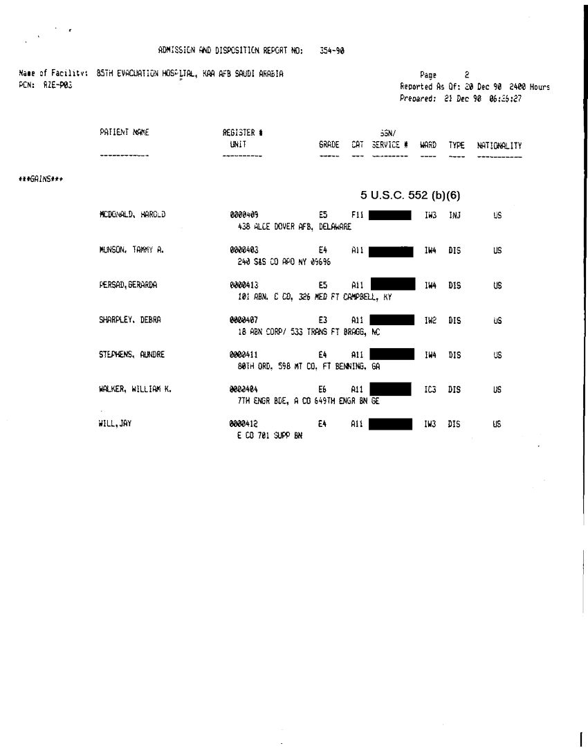 Document 26 f:/Week-32/BX000482/MEDSTAT - SITREPS DEC 90 2 OF 6/patient alpha roster 21 dec 90:10119615403418