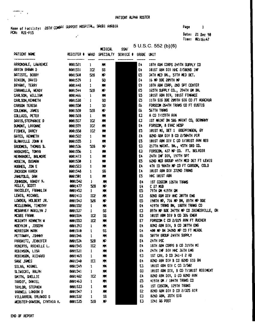 Document 26 f:/Week-32/BX000482/MEDSTAT - SITREPS DEC 90 2 OF 6/patient alpha roster 21 dec 90:10119615403418
