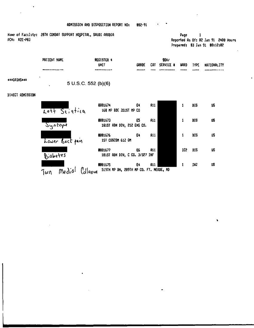 Document 46 f:/Week-31/BX000460/MEDSTAT- SITREPS - JANUARY - 1/patient alpha roster 2 jan 91:10119615403519