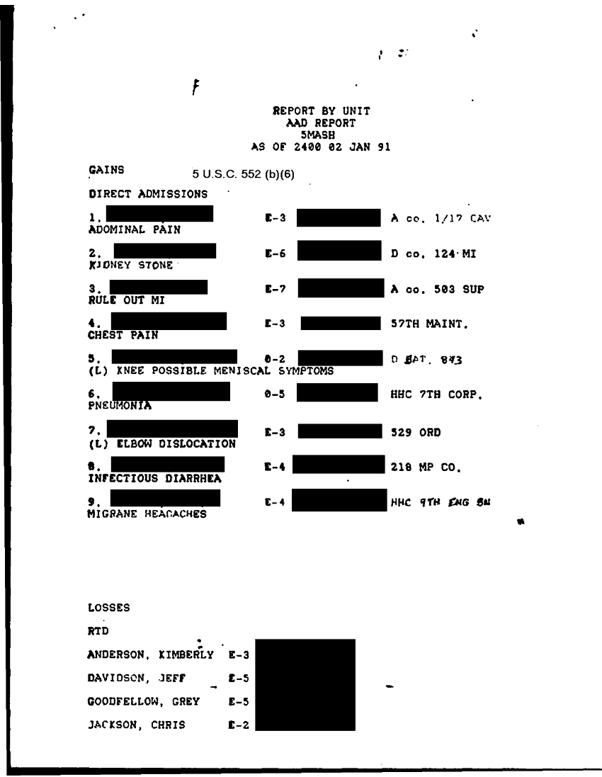 Document 46 f:/Week-31/BX000460/MEDSTAT- SITREPS - JANUARY - 1/patient alpha roster 2 jan 91:10119615403519