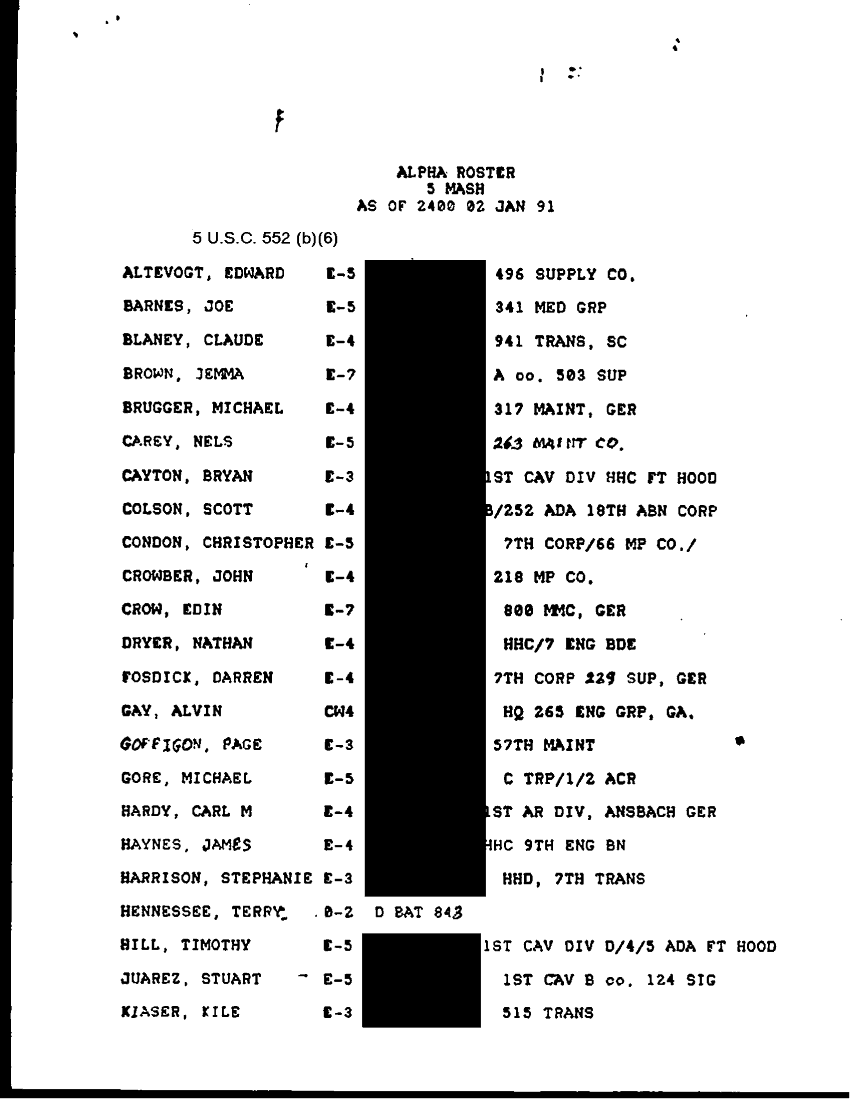 Document 46 f:/Week-31/BX000460/MEDSTAT- SITREPS - JANUARY - 1/patient alpha roster 2 jan 91:10119615403519