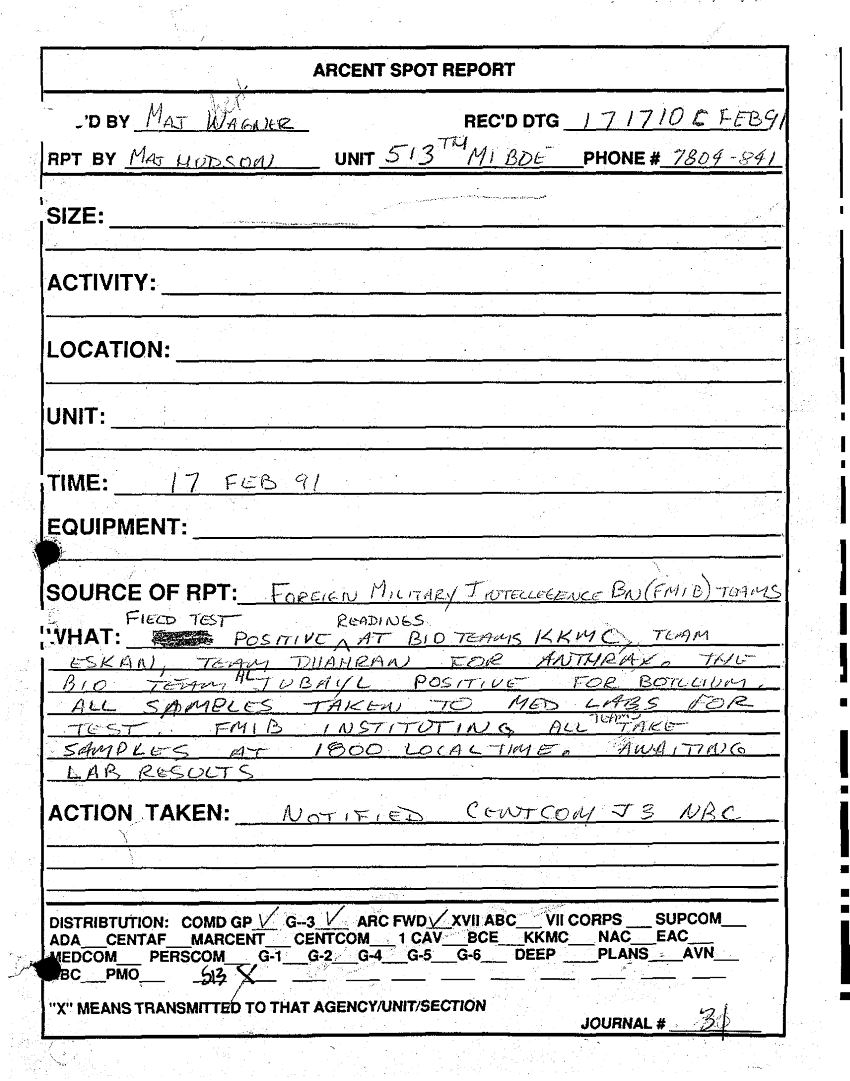 Document 1 f:/Week-31/BX000464/INTELLIGENCE REPORTS - SPOT REPORTS JAN 91-2/arcent spot report bio teams kkmc tests 17 feb:10119615403821