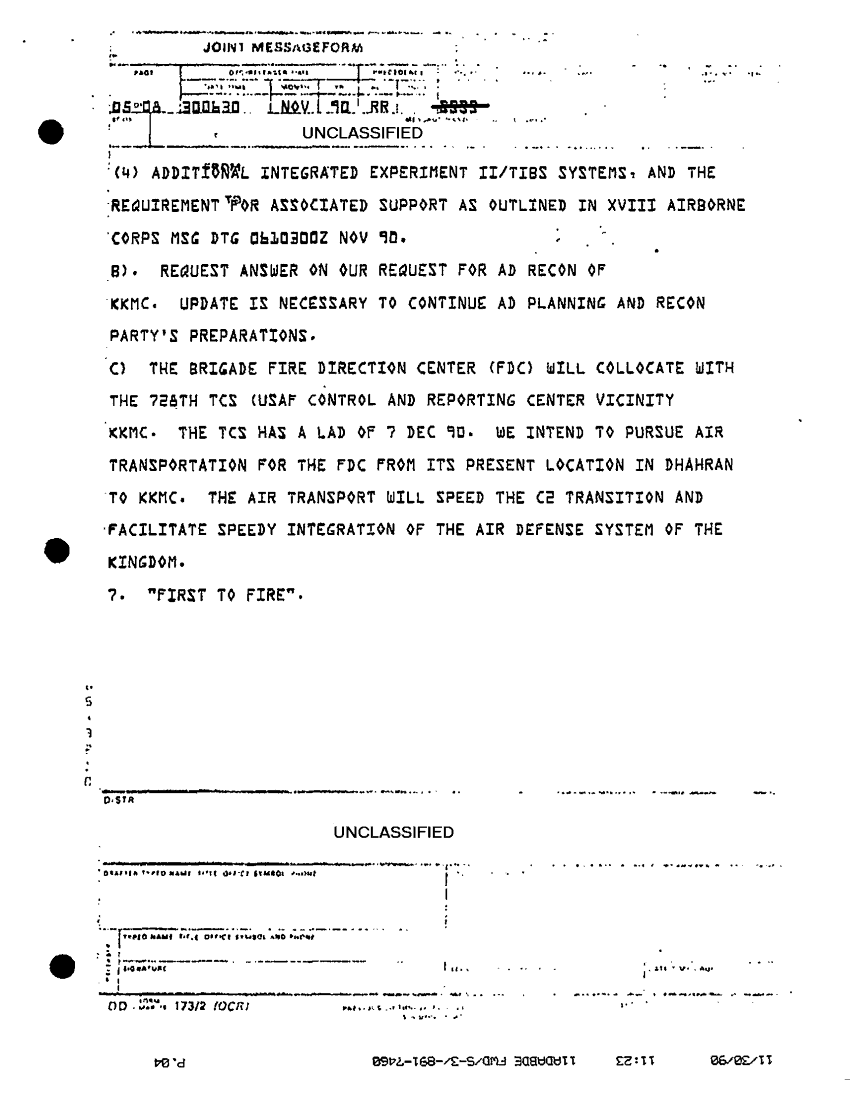 Document 8 f:/Week-32/BX000499/COMMAND REPORTS SITREPS 11TH ADA BDE 7 NOV - 7 DEC 90/11th ada bde situation report no 97 29 to 30 no:10119615413461