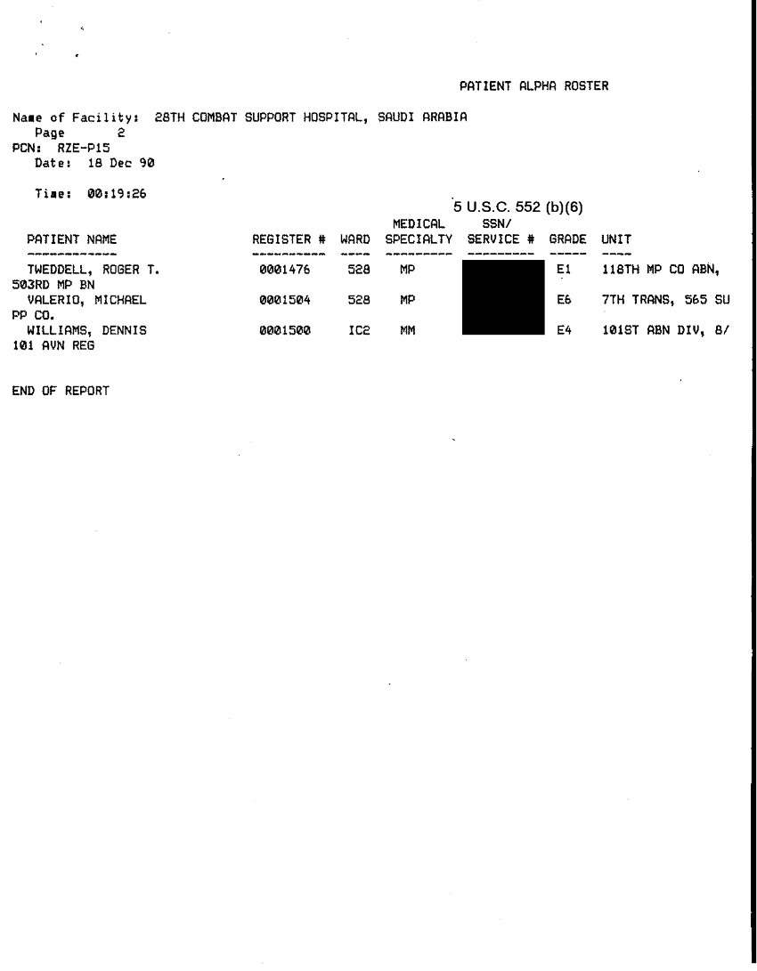 Document 32 f:/Week-32/BX000482/MEDSTAT - SITREPS DEC 90 2 OF 6/patient alpha roster 18 dec 90:10119615413664