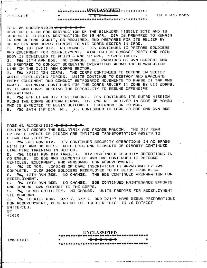 Document 3 f:/Week-33/BX000494/COMMAND REPORTS RPTS TASK FORCE FREEDOM 1 0F 2 2/msgid sitrep usarcent c226 mar:10119615421795