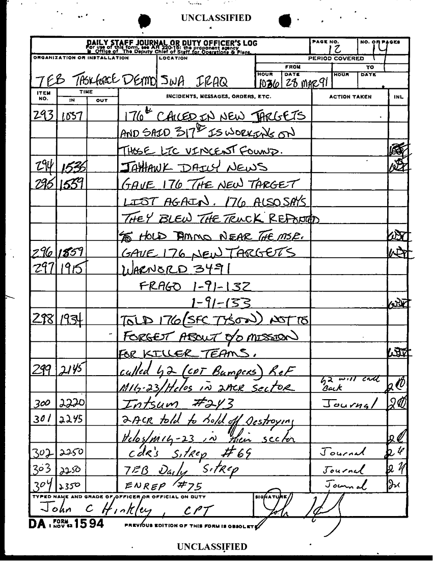 Document 14 f:/Week-24/BX000211/TASK FORCE DEMO LOG 14 MAR- 1 APR 91/daily staff journal or duty officers log:10119615421190