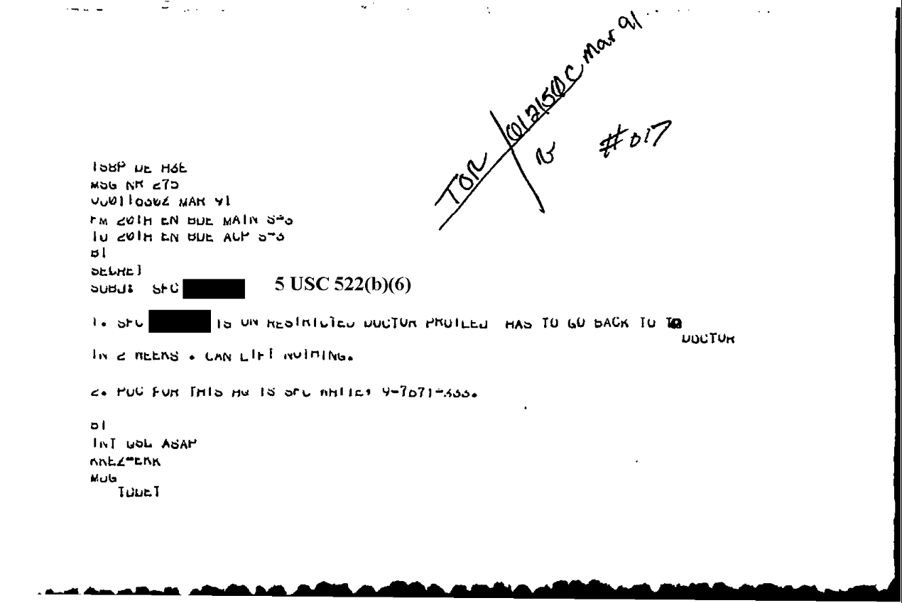 Document 1 f:/Week-18/BX000057/DUTY LOG MAIN CP MESSAGES 20 ENGINEER BDE 1 MAR 91/message medical visit:10189613572938