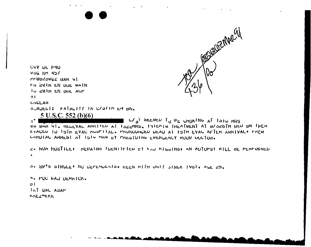 Document 1 f:/Week-18/BX000057/DUTY LOG MAIN CP MESSAGES 20 ENGINEER BDE 8 MAR 91/fatality:10189613573444