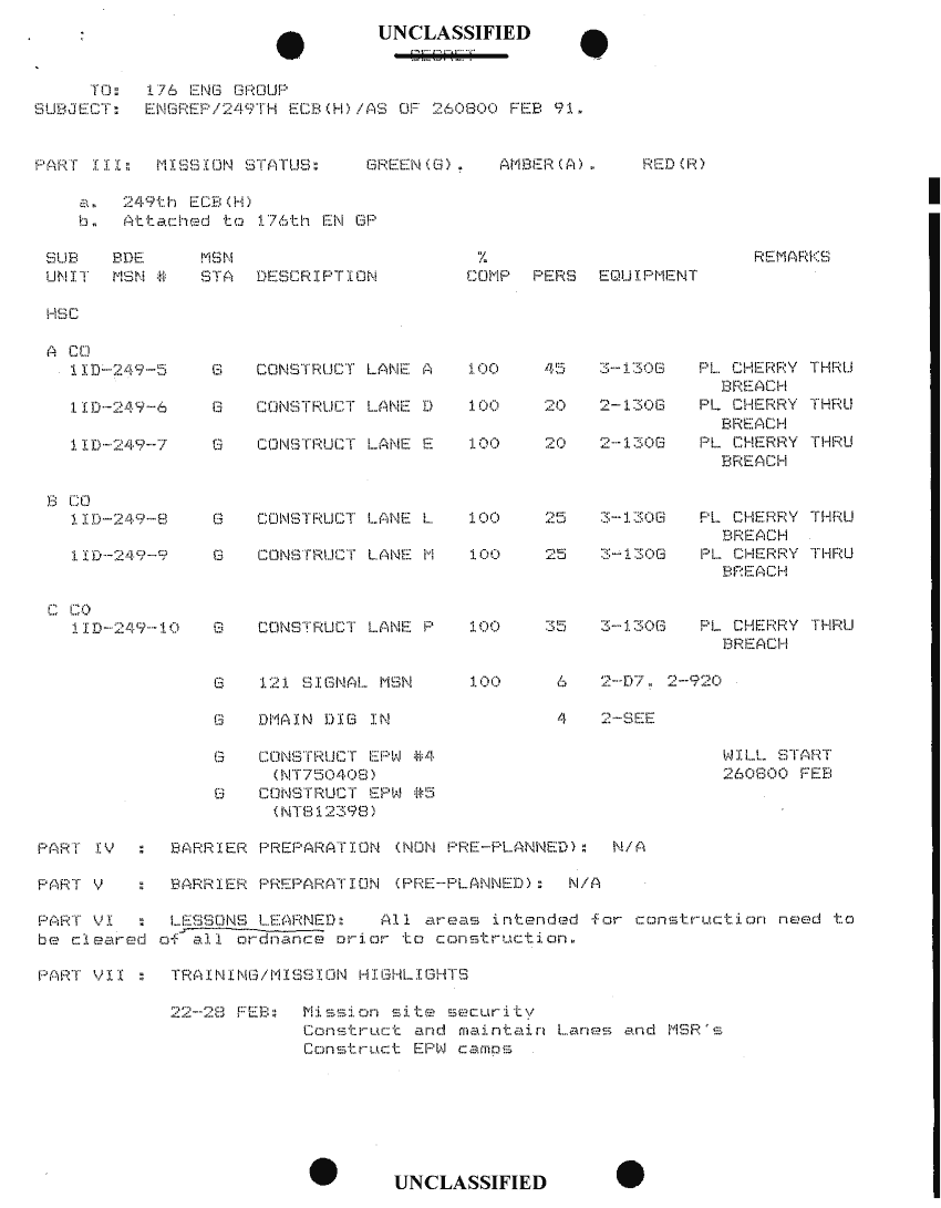 Folder Title = SITUATION REPORTS 176TH ENG GP 21 FEB- 18 MAR 91