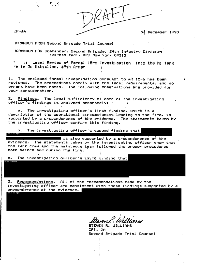 Subject = INVESTIGATION INTO THE M1 TANK FIRE IN 3D BATTAL