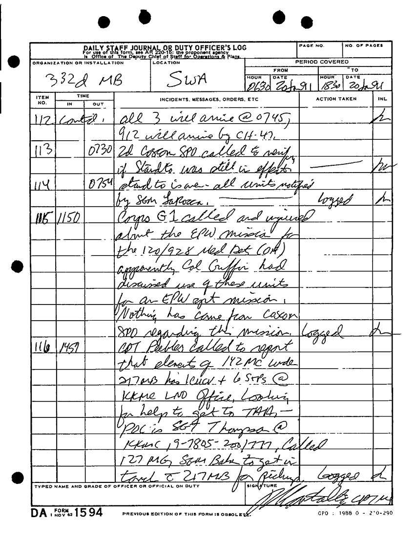 Document 34 f:/Week-34/BX005159/DA FORM 1594-DAILY STAFF JOURNAL OR DUTY OFFICERS LOG -23 DEC 90-26 JAN 91/daily staff journal or duty officers log 21 jan :10019616505868