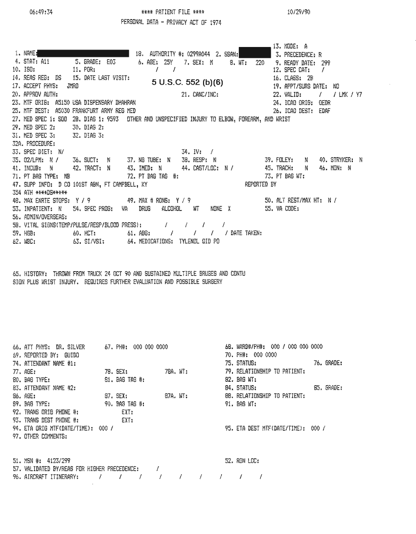 Document 46 f:/Week-32/BX000482/MEDSTAT - SITREPS OCT 90 3 OF 4/patient file 29 oct 90:10019616503417