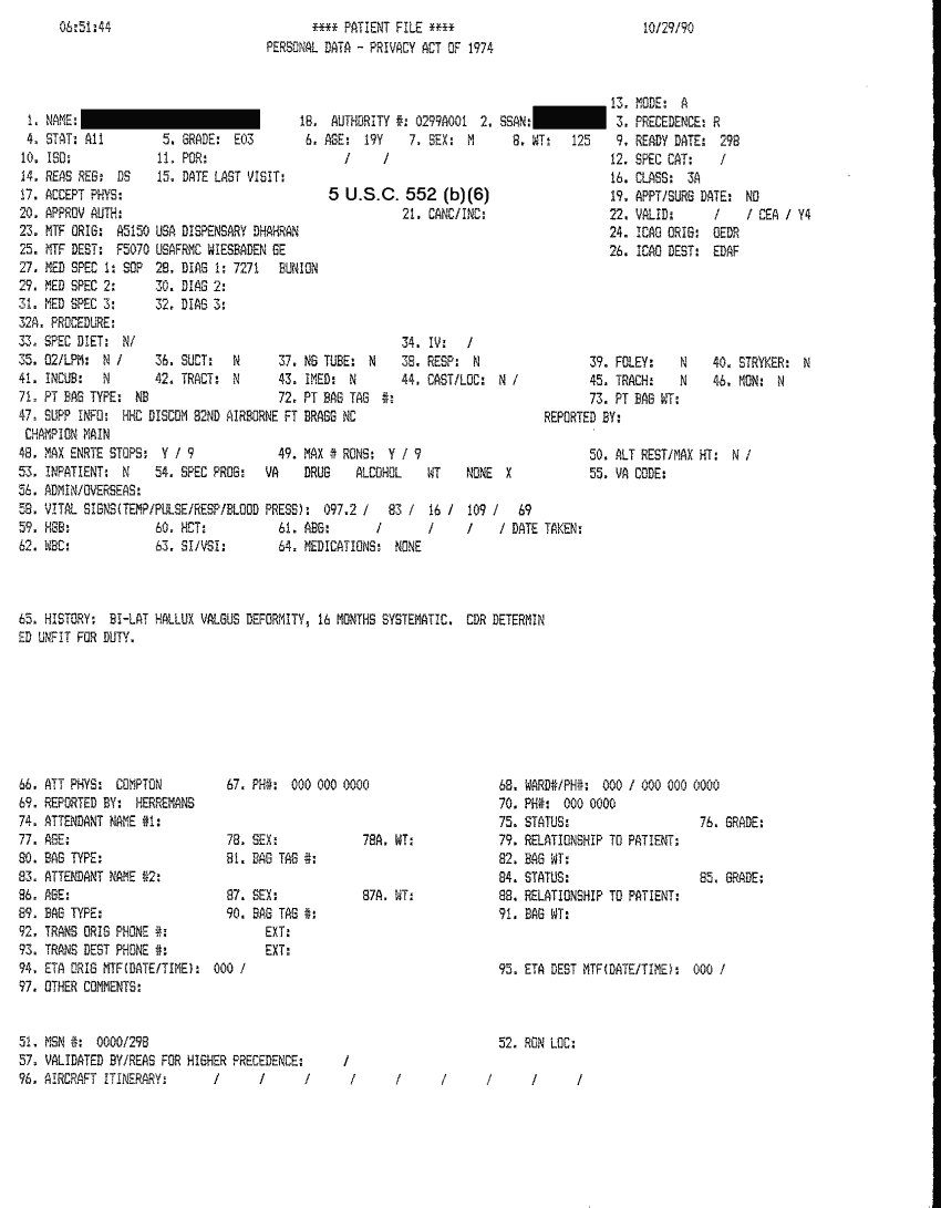Document 46 f:/Week-32/BX000482/MEDSTAT - SITREPS OCT 90 3 OF 4/patient file 29 oct 90:10019616503417