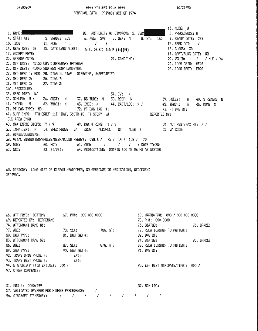 Document 46 f:/Week-32/BX000482/MEDSTAT - SITREPS OCT 90 3 OF 4/patient file 29 oct 90:10019616503417