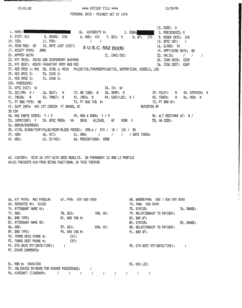 Document 46 f:/Week-32/BX000482/MEDSTAT - SITREPS OCT 90 3 OF 4/patient file 29 oct 90:10019616503417