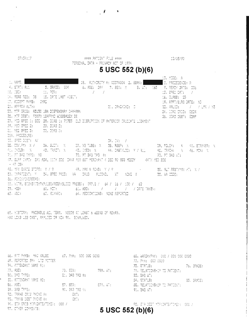 Document 48 f:/Week-32/BX000482/MEDSTAT - SITREPS DEC 90 1 OF 6/patient file personal data:10019616510479