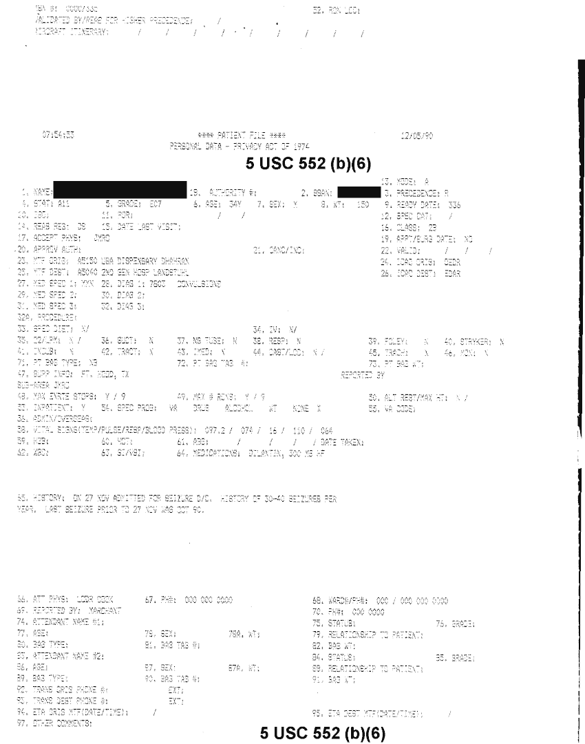 Document 48 f:/Week-32/BX000482/MEDSTAT - SITREPS DEC 90 1 OF 6/patient file personal data:10019616510479