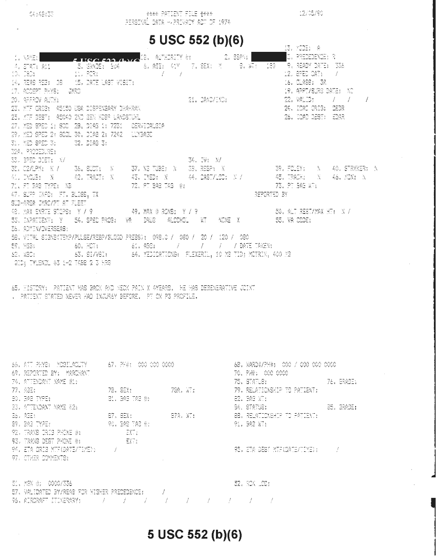 Document 48 f:/Week-32/BX000482/MEDSTAT - SITREPS DEC 90 1 OF 6/patient file personal data:10019616510479