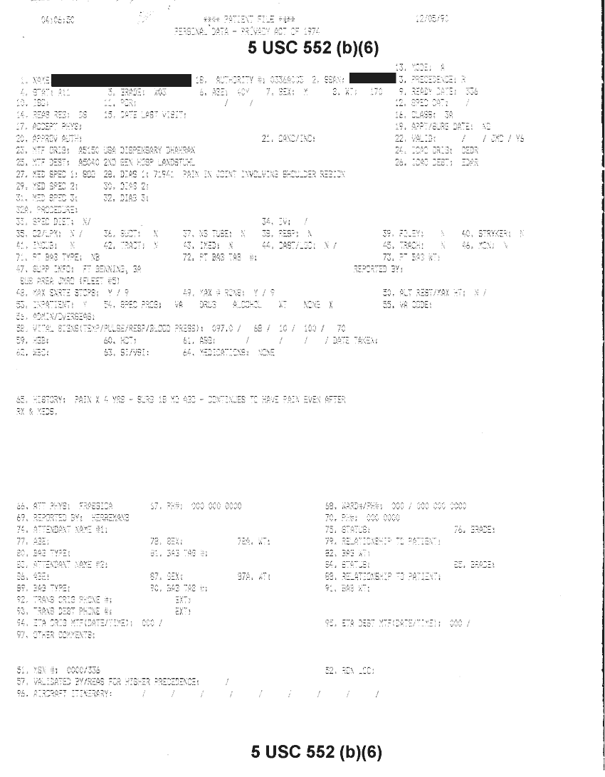 Document 48 f:/Week-32/BX000482/MEDSTAT - SITREPS DEC 90 1 OF 6/patient file personal data:10019616510479