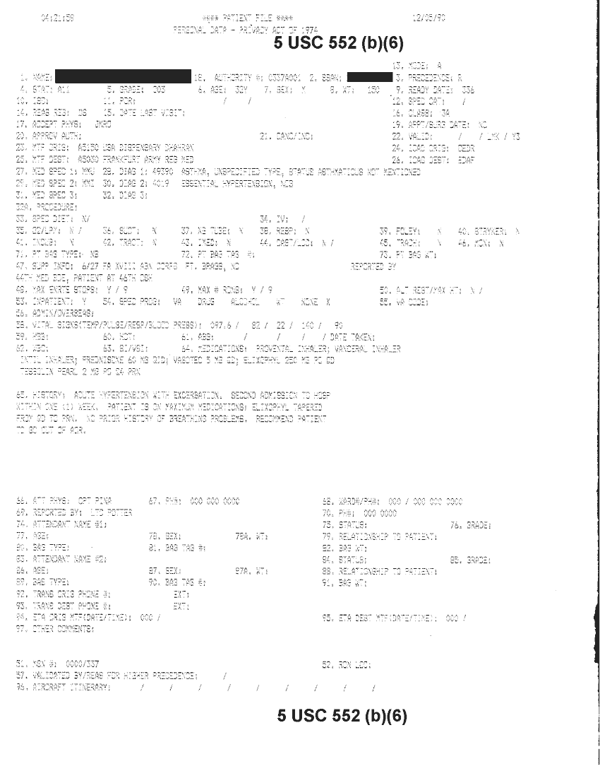 Document 48 f:/Week-32/BX000482/MEDSTAT - SITREPS DEC 90 1 OF 6/patient file personal data:10019616510479