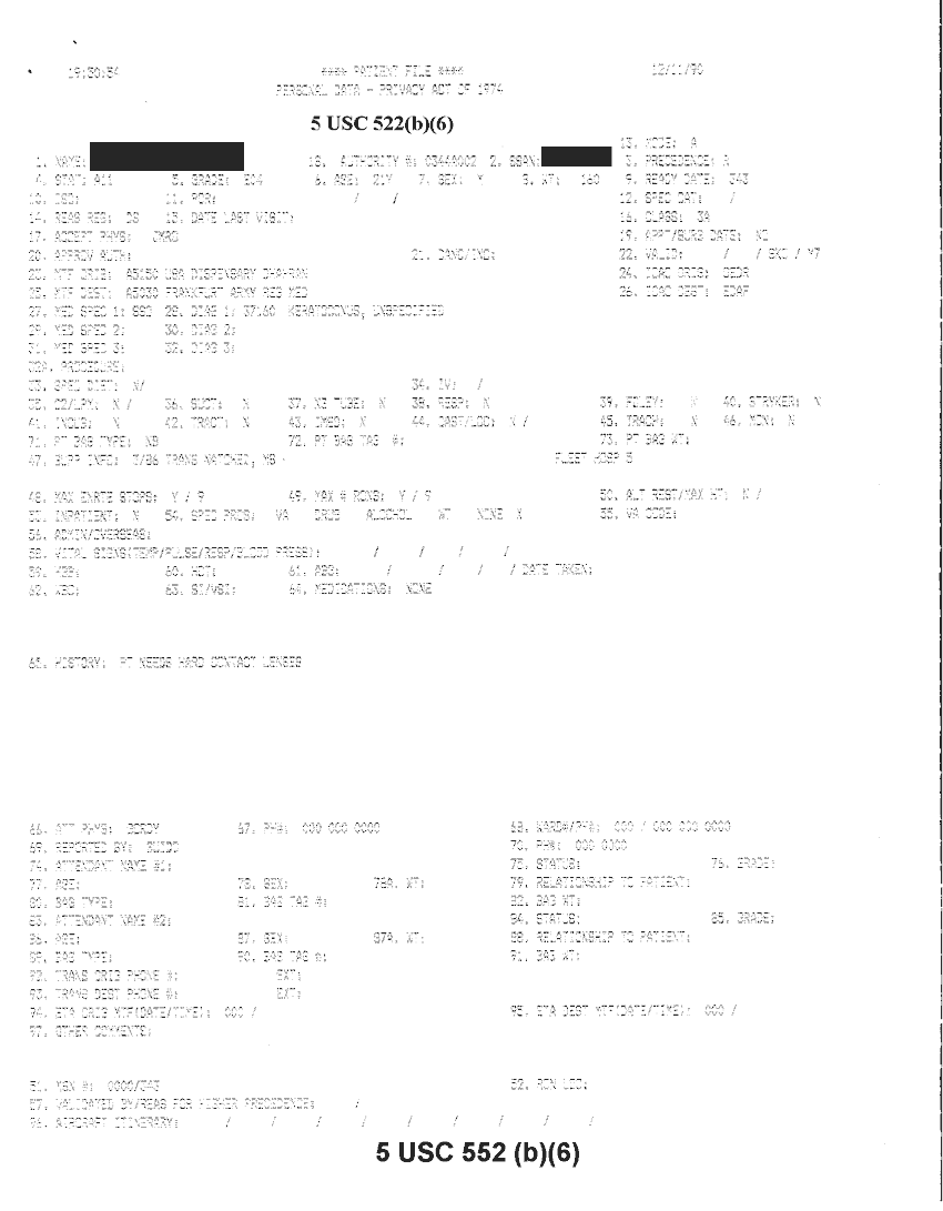 Document 20 f:/Week-32/BX000482/MEDSTAT - SITREPS DEC 90 1 OF 6/patient file personal data:10019616510581