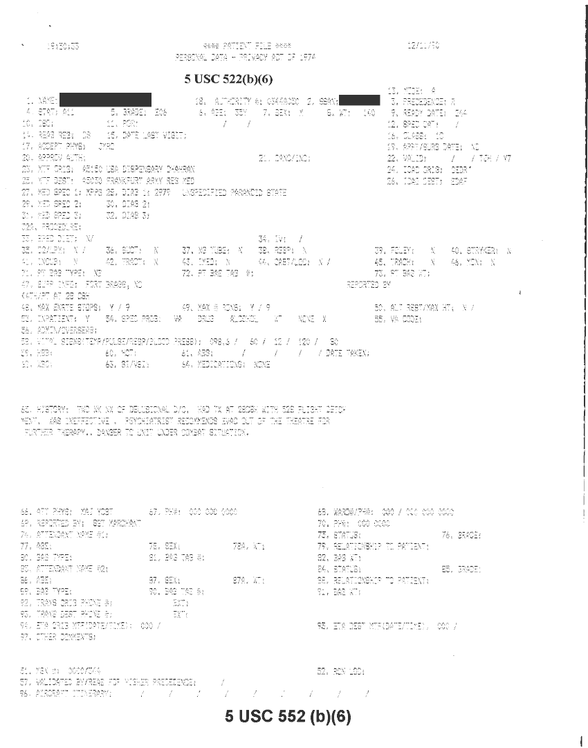 Document 20 f:/Week-32/BX000482/MEDSTAT - SITREPS DEC 90 1 OF 6/patient file personal data:10019616510581