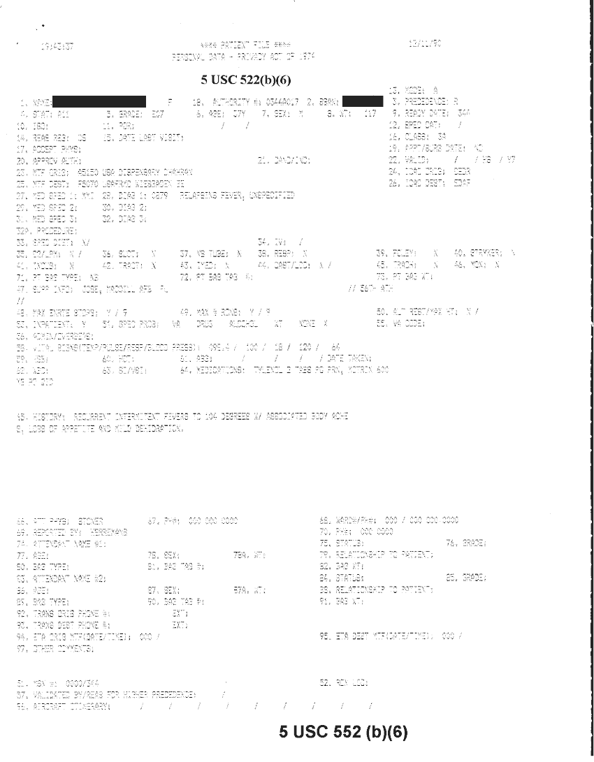 Document 20 f:/Week-32/BX000482/MEDSTAT - SITREPS DEC 90 1 OF 6/patient file personal data:10019616510581