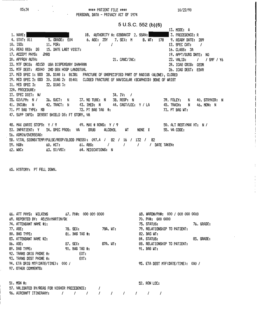 Document 41 f:/Week-32/BX000482/MEDSTAT - SITREPS OCT 90 3 OF 4/patient file:10019616503518