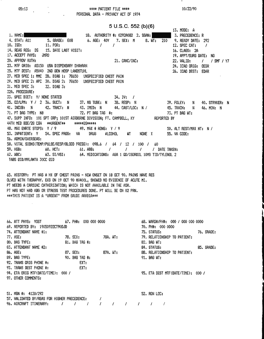 Document 41 f:/Week-32/BX000482/MEDSTAT - SITREPS OCT 90 3 OF 4/patient file:10019616503518