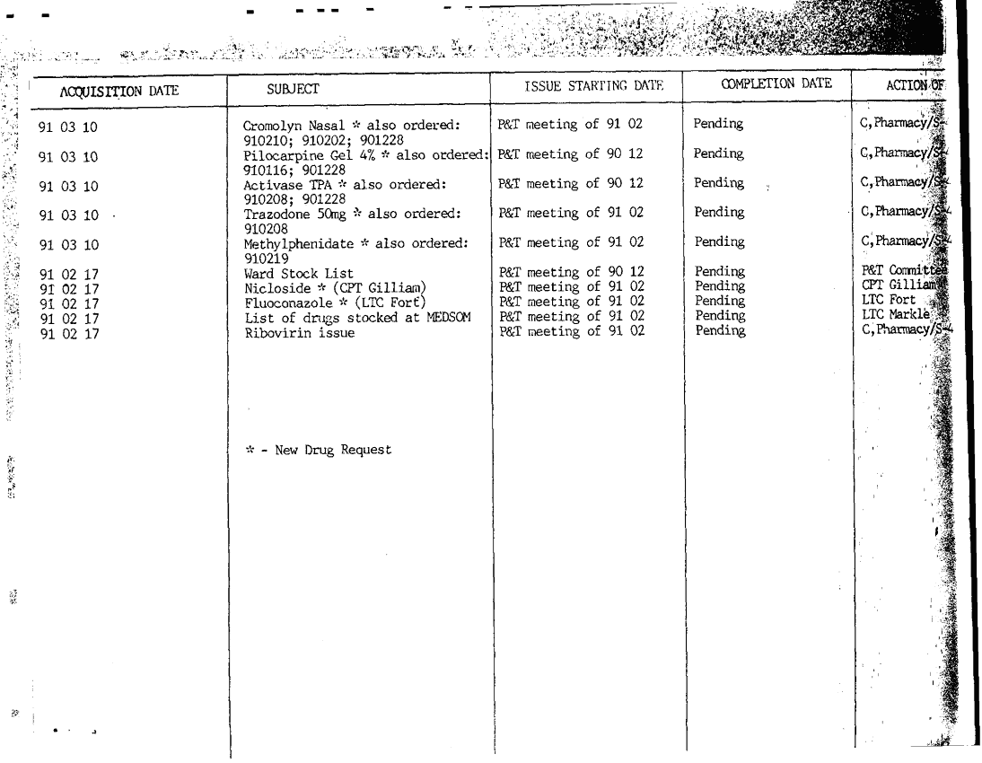 Document 3 f:/Week-34/BX005157/85TH EVAC HOSPITAL -PHARMACY-FORMULARY -PATIENTS/pharmacy p and t committee meeting agenda 26 mar:100196165119110