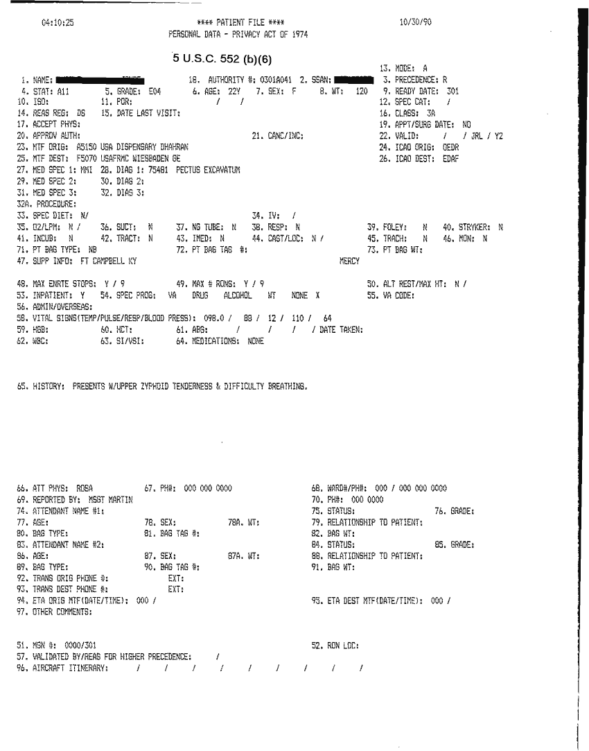 Document 31 f:/Week-32/BX000482/MEDSTAT - SITREPS OCT 90 3 OF 4/patient file:10019616503620