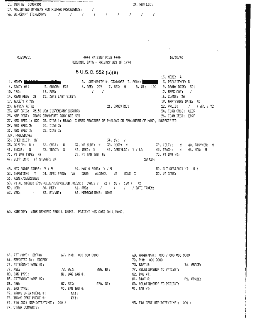 Document 31 f:/Week-32/BX000482/MEDSTAT - SITREPS OCT 90 3 OF 4/patient file:10019616503620