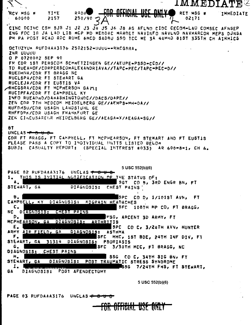 Document 3 f:/Week-30/BX000448/HISTORIANS BACKGROUND MATERIALS FILES - ARCENT READING FILES 7 AUG 90/casualty report:10019616505560