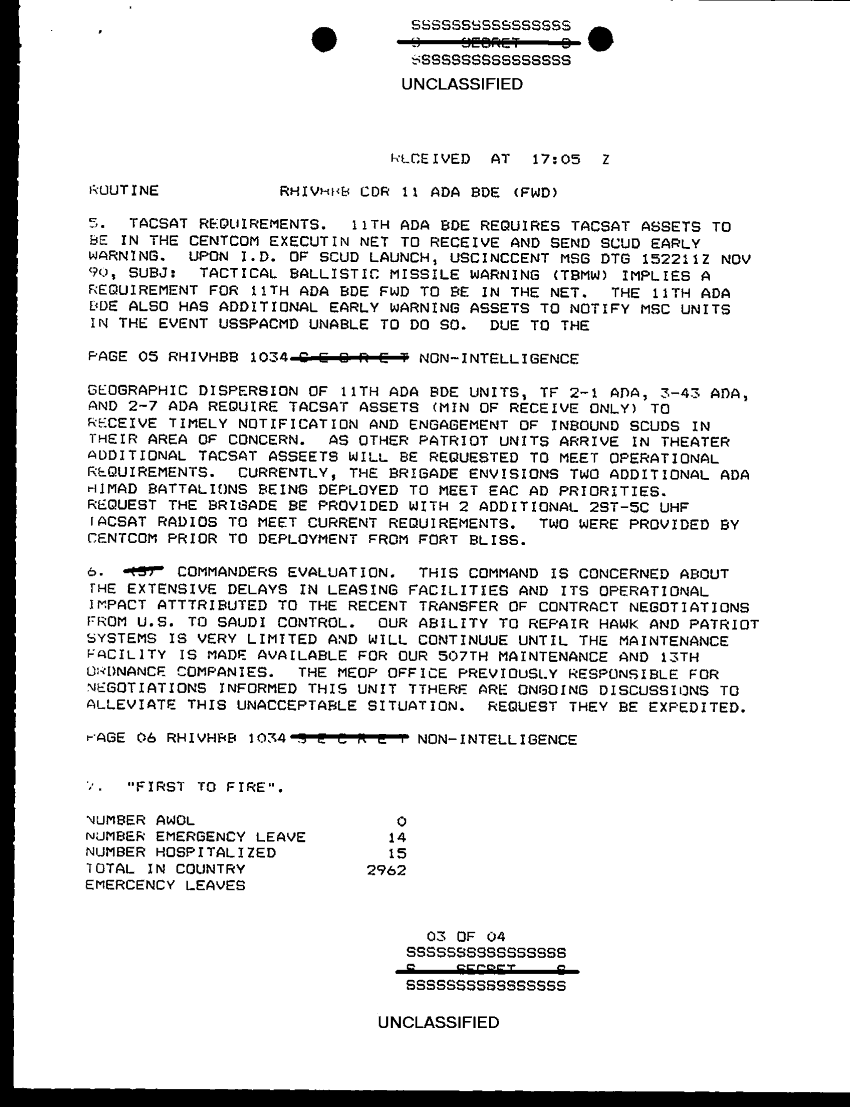 Document 8 f:/Week-29/BX000429/TACTICAL OPERATIONS CENTER LOGS - MSG FILE LOGS 19 NOV 90/sitrep 86 11th ada bde fwd 19 nov 90:10019616505561