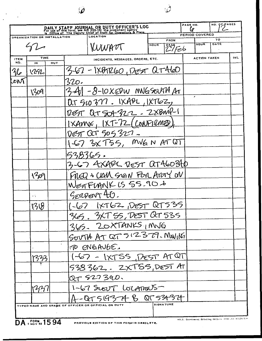 Document 22 f:/Week-28/BX001921/DAILY STAFF JOURNALS 25-28 FEB 91/daily staff journal 24feb91:100196165117107