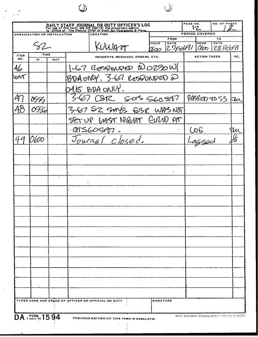 Document 22 f:/Week-28/BX001921/DAILY STAFF JOURNALS 25-28 FEB 91/daily staff journal 24feb91:100196165117107